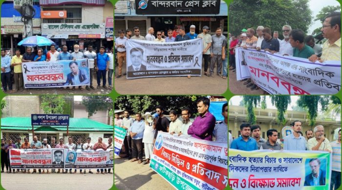 গাজীপুরের চান্দনা চৌরাস্তা এলাকায় দৈনিক প্রতিদিনের কাগজের গাজীপুরের স্টাফ রিপোর্টার আসাদুজ্জামান তুহিন হত্যার প্রতিবাদ, দোষীদের দ্রুত বিচার এবং সাংবাদিকদের নিরাপত্তা নিশ্চিতের দাবিতে সারাদেশে মানববন্ধন কর্মসূচি ও বিক্ষোভ পালিত হয়েছে। শনিবার