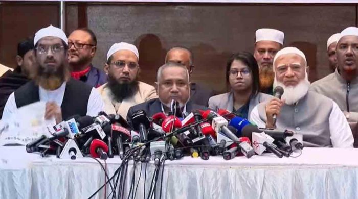 বাংলাদেশ জামায়াতে ইসলামীর সঙ্গে নির্বাচনী সমঝোতায় অংশ নেওয়া দলগুলোর সংবাদ সম্মেলনে অংশ নিচ্ছে না ইসলামী আন্দোলন বাংলাদেশের নেতারা। মঞ্চে জামায়াত আমিরের পাশে চেয়ার নির্ধারিত থাকলেও আসেননি চরমোনাই পীর। বৃহস্পতিবার রাত