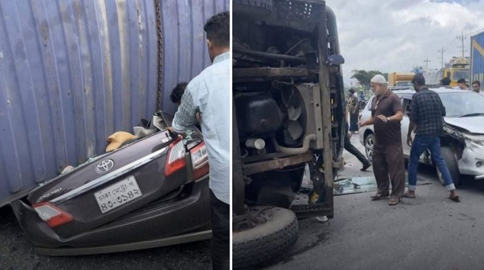 কুমিল্লার সদর দক্ষিণ উপজেলায় একটি কাভার্ডভ্যান নিয়ন্ত্রণ হারিয়ে উল্টে গিয়ে প্রাইভেটকারের ওপর পড়ে একই পরিবারের চারজন নিহত হয়েছেন। শুক্রবার দুপুর সোয়া ১টার দিকে ঢাকা-চট্টগ্রাম মহাসড়কের পদুয়ার বাজার এলাকায় এ ঘটে।